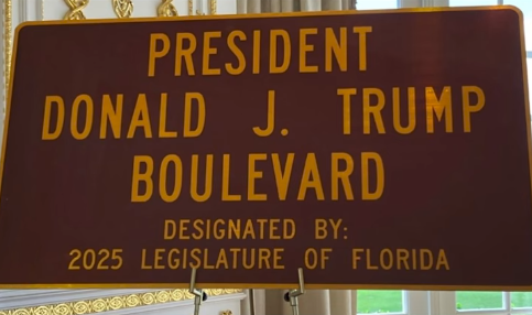 Na Floridi je potekala posebna slovesnost, kjer so razkrili novo cestno tablo z imenom Trumpa. Ta odsek ulice Southern Boulevard, ki vodi z letališča neposredno do posestva Mar-a-Lago, kjer je Trump pogosto preživljal konce tednov, je zdaj uradno poimenovan po njem. Na dogodku je Trump poudaril svojo naklonjenost do prebivalcev Floride in območja Palm Beacha, kar so zabeležili tudi ameriški mediji.